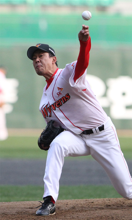 21일 오후 인천 문학구장에서 열린 프로야구 LG-SK경기, SK 선발투수 이승호가 힘차게 공을 던지고 있다.