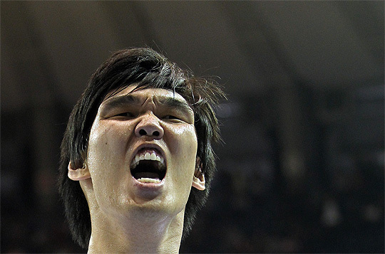 24일 오후 서울 송파구 잠실동 잠실실내체육관에서 열린 2010-2011 현대모비스 프로농구 챔피언결정전 5차전 전주 KCC와 원주 동부의 경기에서 KCC 하승진이 경기에서 이긴 후 포효하고 있다. (desk@jjan.kr)