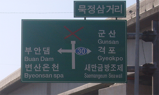 외지인들에겐 더할나위없는 안내자인 도로 표지판도 사정은 마찬가지다.