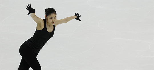 모스크바 세계선수권대회에 출전하는 김연아가 25일 새벽(한국시간) 러시아 모스크바 메가스포츠 아레나에서 쇼트 프로그램 '지젤' 을 연습하고 있다.
