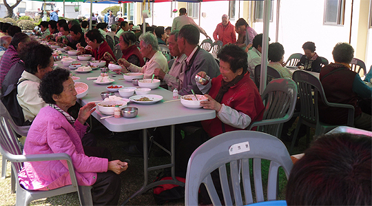 원불교 열린 날을 앞두고 임실군 관촌면 관촌교당(교무 박주신)은 이달 25일 관내 노인 450여명을 초청한 가운데 점심공양 자원봉사를 가졌다.