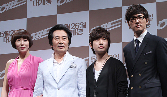 26일 오후 서울시 강남구 압구정 CGV에서 열린 영화 '헤드'(감독 조운) 제작보고회에서 배우 박예진, 백윤식, 류덕환, 데니안(왼쪽부터)이 포즈를 취하고 있다.