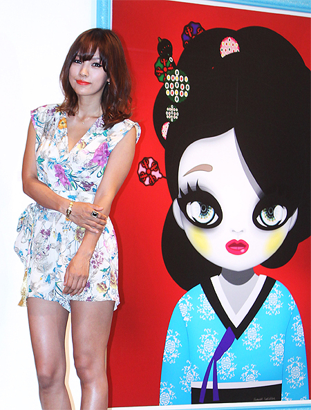 가수 이효리가 2일 오후 서울시 관훈동 인사아트센터에서 열린 '제5회 클리오 코스메틱 아트' 전시회에 참석해 자신을 테마로 한 작품 앞에서 포즈를 취하고 있다.