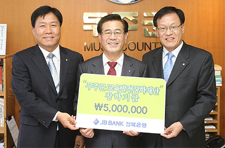 전북은행(은행장 김한)은 6일 무주군교육발전장학재단에 장학금 500만원을 기탁했다.