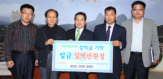 진안출신 완산고 동문회는 9일 진안사랑 장학재단에 100만원의 후학 양성기금을 기탁했다.