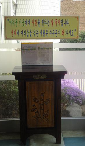 사랑의 뒤주는 시민 출입이 자유로운 읍·면·동 청사 입구에 설치(50kg 기준)된다.