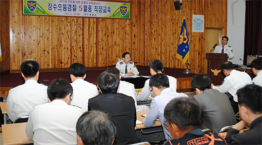 장수경찰서(서장 김도기)는 16일 경찰서 3층 강당에서 각 과장, 계장, 파출소장 등 50여명이 참석한 가운데 주민만족 치안을 위한 직장교육을 실시했다.