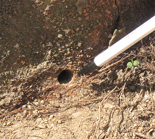 문제는 자연 고사가 아니라는 것. 노목 밑둥 부분에 지름 2cm 가량의 크기의 드릴 구멍 자국이 선명히 나 있었기 때문이다.