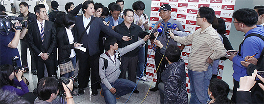 수많은 취재진에 둘러싸인 최경주는 자신을 성원해준 팬들과 스폰서들에게 감사의 마음을 전하면서 "다시 시작한다는 겸손한 마음가짐으로 새로운 목표를 향해 나가겠다"고 말했다.