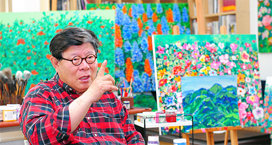 "어린 시절, 뒷산에 피어 있던 도라지꽃을 지금도 잊을 수가 없어요. 청초하고 맑은 그 꽃에 넋을 잃었죠. 내가 그림을 그리고 싶다고 느낀 것도 자연을 가까이 한 어린 시절의 추억에서 비롯된 게 아닌가 합니다."