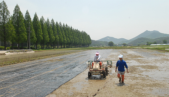 그 후 뚫어진 구멍으로 벼가 생장하게 되고 덮여진 비닐로 인해 잡초와 병충해가 생기지 않는다.