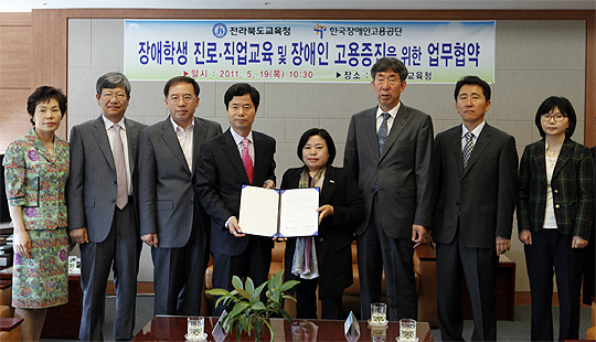 전라북도교육청(교육감 김승환)이 한국장애인고용공단(이사장 이성규)과 장애인 고용증진을 위한 업무 협약을 체결하고 장애인의 취업률 향상을 위해 함께 노력하기로 합의했다.
