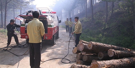 7명 군의원 전원은 20분 뒤 산불발생 지역에 도착하자마자 진화차와 등짐펌프를 이용하여 2시간여 동안 산불진화 작업을 벌였다.