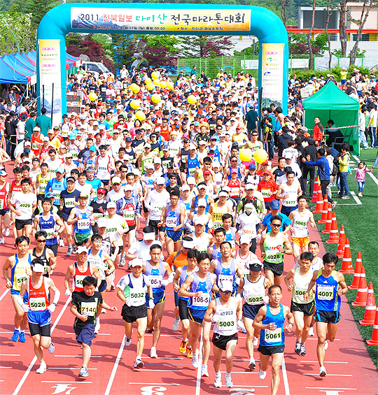 전북일보사와 진안군 체육회가 주최하고, 국민생활체육 전북육상연합회가 주관한 '2011 전북일보 마이산 전국 마라톤 대회'가 전국 마라톤 동호인과 가족 등 2000여 명이 참가한 가운데 22일 마이산 일원에서 열렸다.