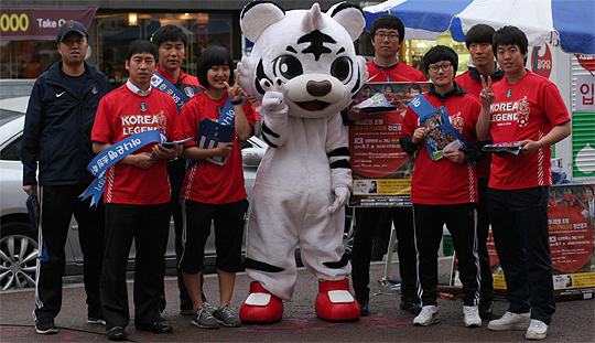 도축구협회의 전방위 거리 홍보전도 입장권 예매의 기폭제다. 도축구협회 임원과 심판 등 50여 명은 매일 출·퇴근 시간에 현대자동차·KCC·LS전선·전주페이퍼·휴비스·하이트맥주 등 기업체와 전북대·전주대·우석대·원광대·군산대 등 도내 대학 등을 누비며 이번 대회 알리기에 매진하고 있다. 도내 곳곳에 홍보 플래카드 100개를 걸고, 포스터 1만 장도 붙였다. 경기 당일엔 추첨을 통해 영국에서 박지성·이청용과 저녁 식사를 같이 할 수 있는 기회를 주고, 가수 박현빈과 걸스데이의 축하 공연도 마련된다.