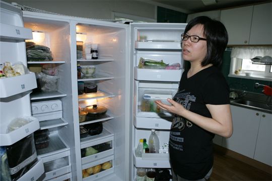음식물로 냉장고를 가득 채울 경우 불필요한 전기 사용량도 그만큼 늘어날 수 있기에 오래전부터 실천해 오고 있는 그녀만의 경제생활 노하우다.
