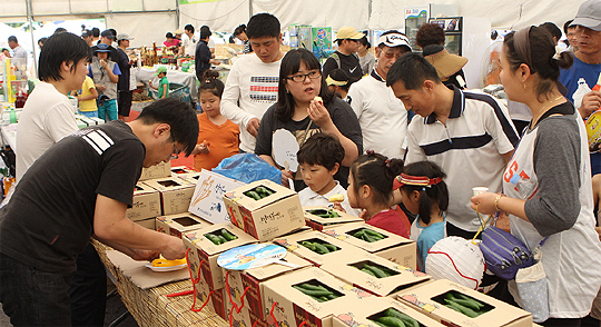 무주반딧불축제장을 관광객들로 붐비면서 무주군의 청정 농·특산물을 찾는 사람들이 늘어나고 있는 가운데