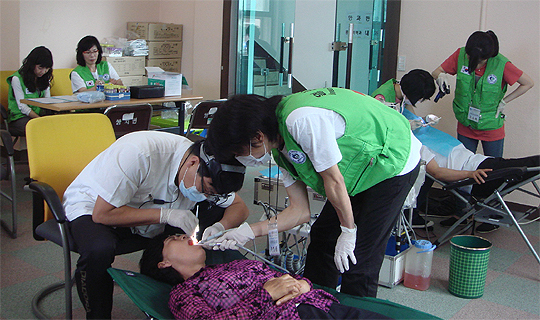 지난 6일 쌍치면사무소에서 의사 10명과 자원봉사자 20명이 쌍치면민 350명을 대상으로 내과, 통증의학과, 안과, 치과, 한방과 등을 진료했다.