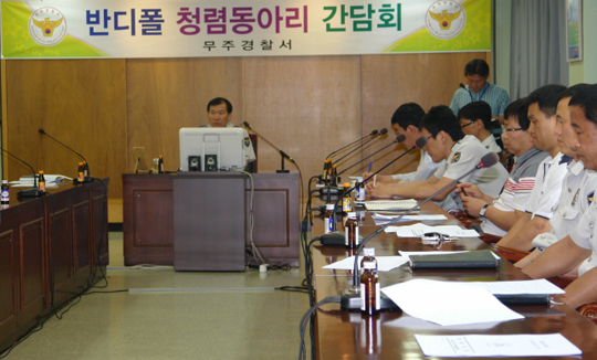 무주경찰서(서장 황대규)는 14일 경찰서 2층 소회의실에서 반디폴 청렴동아리 회원 28명이 참석한 가운데 간담회를 개최했다.