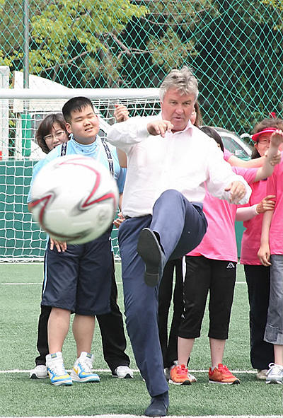 이날 히딩크 감독은 울산지역의 시각장애인 학생들과 축구 경기를 펼치고 피자 만들기 행사 등을 진행했다.