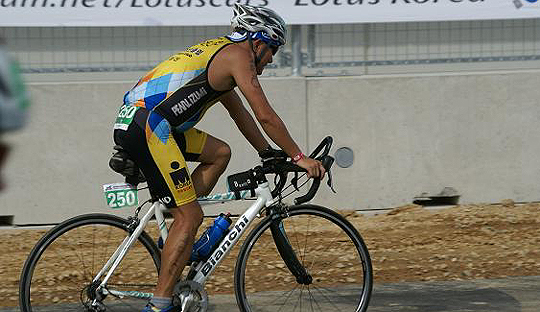 그는 지난달 '여수 트라이애슬론 대회'에서 수영(1.5㎞) 41분45초, 사이클(40㎞) 1시간20분44초, 마라톤(10km) 46분02초로 전체 2시간48분30초로 결승선을 밟았다. 그는 자신의 기록을 "전체 선수를 100명이라고 하면 70등 정도"라고 표현했지만, 그동안 마라톤 대회는 2004년 10월 '제3회 김제 지평선 마라톤 대회'부터 올 4월 '새만금 마라톤 대회'까지 10㎞·하프·풀코스 통틀어 37회 참가하고, 철인3종경기 대회는 2005년 7월 '제1회 여수 트라이애슬론 대회'를 시작으로 34회나 출전한 진정한 '철인'이다.