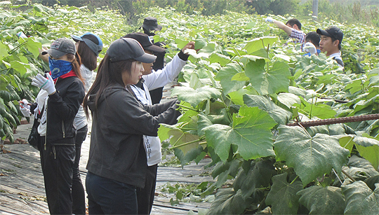 이날 농협 직원들은 김선옥(용지면 신정리)씨 포도 농장을 방문, 포도 봉지씌우기 등을 실시하며 하루종일 사랑의 비지땀을 흘렸다.