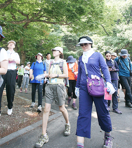 천년고도 옛길 개통식 19일 전주 다가공원에서 열린 천년고도 옛길 개통식에서 참석자들이 완산칠봉에서 다가산으로 이어진 옛길을 걷고 있다.