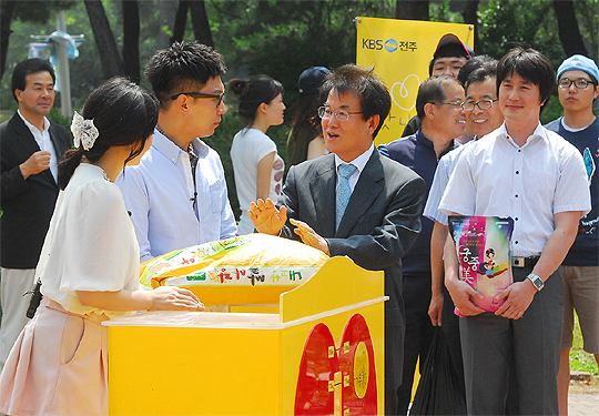 우석대학교(총장 강철규) 학생 및 교직원은 지난 20일부터 이틀간 교정에서 진행된 KBS 전주방송총국의 공익적 예능 프로그램 'The 비빔밥-쌀맛나는 세상 기부米마을' 코너에 출연, 쌀 520㎏을 모아 삼례읍사무소와 노인복지기관에 전달했다.