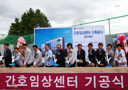 전북대는 23일 서거석 총장을 비롯해 본부 보직자들과 이명하 간호대학장, 김영곤 대학병원장, 박헌례 간호대학 동창회장 등이 참석한 가운데 간호임상센터 기공식을 가졌다.