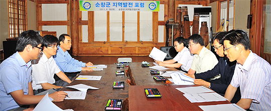 28일 전주한옥생활체험관에서 전북대 안득수 교수를 비롯 전북발전연구원 이성재 박사 등 전문가 5명과 순창군 지역발전협의회 신동화 의장과 공무원 등 20여명이 참석해 '순창군 지역발전 포럼'을 개최했다.