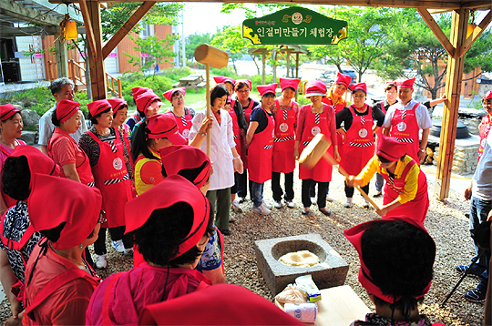 서울시 동대문구 아파트연합 부녀회장단이 지난 27일 1박 2일의 일정으로 순창을 찾은 가운데 인절미 만들기를 체험하고 있다. 순창군(desk@jjan.kr)