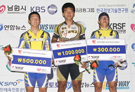 '2011 남원 코리아 오픈 국제 롤러 경기대회' 남고부 MVP를 차지한 전주생명과학고 임정훈(3학년·가운데). (desk@jjan.kr)