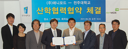 전주대(총장 이남식)는 29일 (주)애니모드(대표이사 김상용)와 서울 애니모드 본사 회의실에서 산·학 협력 협약을 맺었다.