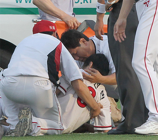 KIA의 2번 타자로 공수에서 펄펄 날았던 김선빈은 5일 군산구장에서 열린 넥센과의 경기에서 2회 코리 알드리지의 직선 타구에 얼굴을 맞고 그대로 쓰러져 병원으로 실려갔다.