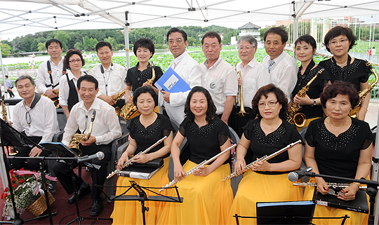 지난 9일 전주 덕진공원에서 열린 2011 전주연꽃문화제에서 시민들에게 아름다운 선율로 기쁨을 나눠준 순수 아마추어 연주단 '에델바이스 전주악단' 이 공연을 마치고 기념촬영을 하고 있다. 이강민(lgm19740@jjan.kr)