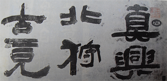 이 현판의 글씨를 통하여 우리는 추사의 강건한 필력과 탁월한 조형 감각을 볼 수 있다. 자형은 평범하나 매우 우람한 필획으로 쓴 '眞'자도 아름답거니와 '興'자의 윗부분은 들쭉날쭉하게 변화를 준 다음 아랫부분은 굵은 가로획으로 정리하고 다시 두 점은 모양을 달리하여 좌우로 힘차게 삐침으로써 강한 생동감을 부여하였다. 다시 '北'자는 안온하게 썼다가 '狩'자는 왼편의 '?(犬)'은 크고 굵게 쓰고 오른 편의 '守'는 작게 씀으로써 대소와 강약의 변화를 크게 주어 강한 대비감을 조성하였다. 그리고 '古'자는 탄탄한 필획과 좌우의 대칭을 잘 맞춘 결구를 갖춤으로써 앞서 '狩'자가 보여준 파격적인 분위기를 다시 안정적인 분위기로 이끌고 있다. 마지막으로 '竟'자에 이르러서는 추사의 기발한 창작정신을 더욱 유감없이 발휘하였다. '竟'은 '일을 끝맺는다.'는 의미의 '마침 경'자이고, '境'은 땅의 경계를 의미하는 '지경 경'자 이기 때문에 이 비가 가진 경계비이자 순수비의 의미로 보자면 응당 '境'으로 써야 맞다. 그런데, 추사는 '竟'으로 썼다. 왜 그랬을까?