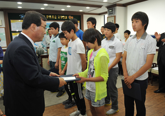 이강수 군수는 "어렵고 힘든 상황이 오더라도 자신의 꿈을 포기하지 말고, 꼭 이루어 우리나라를 빛내고 대표할 수 있는 훌륭한 선수가 되어 달라"고 격려했다.