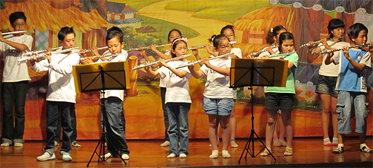 지난 18일 김제 백구초등학교 다목적실에서 열린 '독서잔치' 에서 학생들이 플루트 연주를 선보였다. 김제 백구초등학교(desk@jjan.kr)