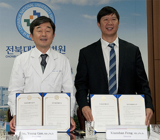 전북대학교병원(병원장 김영곤)은 지난 18일 중국 하남과학기술대학 제1부속병원과 상호간 우호 협력과 학술 교류 촉진을 위한 협정식을 가졌다고 19일 밝혔다.