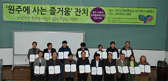 강원도 원주에는 자립경제를 지향하는 공동체조직이 있다. '원주협동사회경제네트워크(대표 최정환 원주한살림대표)'. 농업·교육·소비자·사회서비스·문화·환경 관련 지역 공동체조직과 사회적기업이 참여하고 있다.