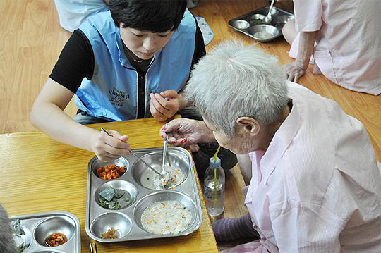 롯데백화점 전주점 온고을 나눔 봉사단은 8일 전주시 효자동에 있는 천사의 집을 방문, 봉사활동을 벌였다. 20여명의 봉사단원들은 이날 천사의 집에서 생활하는 노인들에게 정성스럽게 준비한 삼계탕과 후식으로 수박을 제공했다.