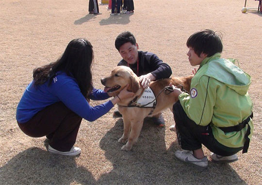 원광대 애완동식물학을 전공하는 학생들로 구성된'뉴 퍼피드림(회장 윤정민)'.