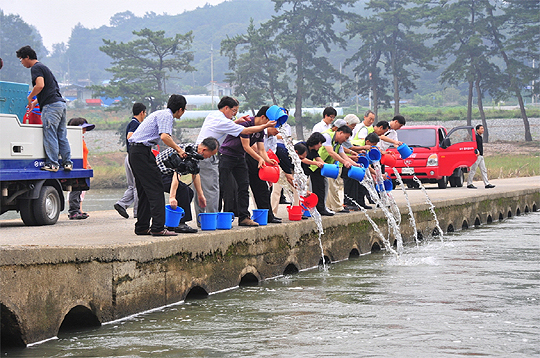 군은 17일 유등 화탄교 섬진강변에서 공무원, 환경단체회원, 전주지방환경청 관계자 등 50여명이 참여한 가운데 붕어 60만, 잉어 50만, 메기 22만 등 13만2000천마리의 방류행사를 가졌다.