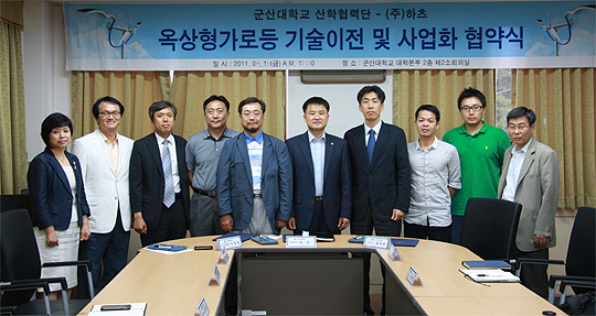 군산대학교가 지난 19일 대학본부 소회의실에서 (주)하츠와 옥상용 풍력가로등 기술 이전식을 가졌다.