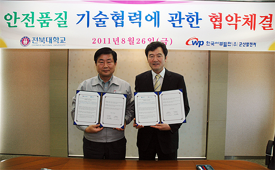 전북대학교 안전품질혁신센터(센터장 홍성훈)가 26일 한국서부발전 군산발전처(처장 이정호)와 산·학 협력 협약을 맺었다.