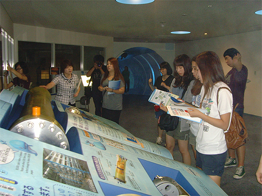 학생들이 후쿠오카의 대규모 해수담수화시설(마미즈피아)을 방문, 관계자로부터 설명을 듣고 있다. (desk@jjan.kr)