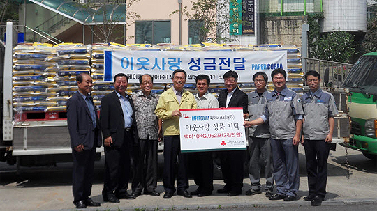페이퍼코리아는 지난 2003년부터 명절이면'이웃사랑 성금 모으기'를 실시해 왔으며, 이날 기탁된 쌀도 이명철 대표와 임직원들이 정성껏 모은 성금으로 구입한 것이다.