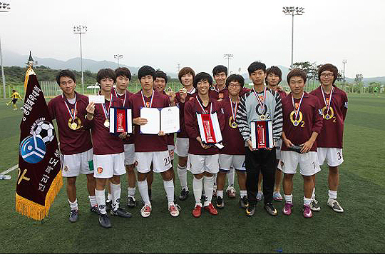 18일 끝난 '2011 도지사기 대학생 클럽대항 대회' 축구 부문에서 우승한 아스널 클럽 선수들이 기념 촬영을 하고 있다. 전라북도생활체육회(desk@jjan.kr)