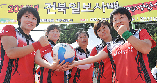 25일 열린 '2011 전북일보배 전북직장·동호인 및 여성족구대회' 여성부 1부 우승기는 전주하나가 가져갔다. 이 대회 여성부가 생긴 이래 한 번도 바뀌지 않은 장면이다.