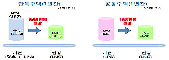 군이 천연가스 사용시 가구별 연간 연료비 절감 효과를 분석한 결과, 등유와 LPG가스를 사용하는 단독 주택은 연간 65만5000원, LPG가스를 사용하는 아파트 등 공동주택은 16만8000원이 절감되며, 이를 전체적으로 환산할 경우 단독주택 2,871가구, 공동주택 929가구 등 3,800여 가구에서 약 14억원의 연료비 절감 효과를 거둘 수 있다는 분석이다.